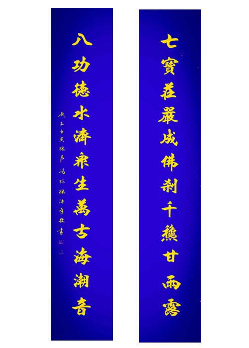 院内观音殿正门两旁6米X0.5米的抱柱楹联:
