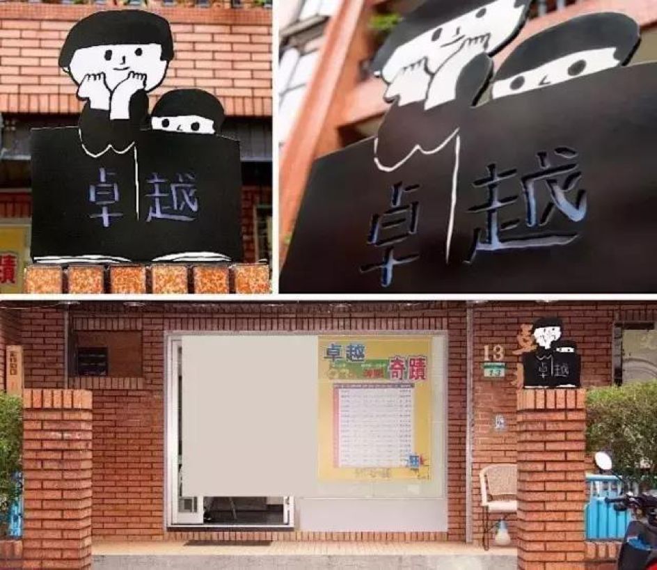 这是一间小区型的“晚托班”,给那些街区的中学生、初中生补习辅导的地方。补习班原有一个老旧巨大的铁柱招牌,看上去很有危险和距离感。重新设计后的招牌,有了一大一小的小孩,共同阅读一本书,书上是这所大学的名字,在名字的后面还藏了灯,夜晚时会发光,给放学之后此处的小孩带来一丝温馨。