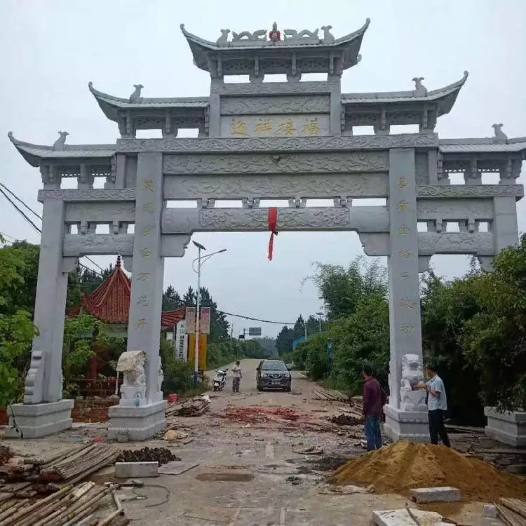 石牌坊村庄石头牌坊农村牌坊样式效果图片“石牌坊”即安装在乡村村庄入口处。国家倡导打造魅力乡村,石牌坊受到农村景观的热爱,石牌坊非常看重“石牌坊大梁”的建造和装饰,因其代表着一个家庭的生活风貌。“石牌坊”的整个建筑一石到顶,且不用任何其他材料辅助。能工巧匠仅凭一双手,“凿、磨、雕、刻”出一块块各种规格的条石,农村祠堂从构图上看艺人仍遵循着“画中要有戏,百看才不腻”中*特色绘画的旨趣特点。虽然“石牌坊”的历史并不长,但它以“土而不俗,华而简直、庄得而大方“的艺术效果,越来越得到当地民众的喜爱,成为一种的街门***俗。