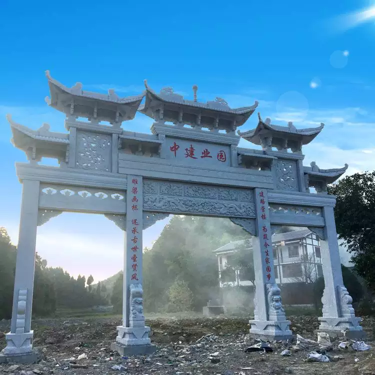在村落入口建造一座石牌坊,不仅可以借助展示***的农村文化,还可以提高村庄的整体形象。其中单门牌坊建造风格也有他们为常见的牌坊之一,主要应用在地面狭窄的马路所建造。下面请看石牌坊厂家,精心***的单门牌坊图片大全。单门牌坊成为典型的村落石牌坊作品代表,我们就来说说几个主要的妨碍因素吧。有的匾额还显示出该村庄祖先根在何处以及下上村庄名字。有些豪门大宅在单门牌坊后面左右各放一对石狮子。