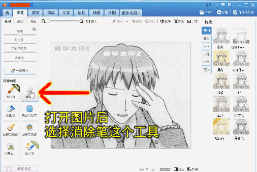 打开截图选择「消除笔」工具对要消除水印的区域进行涂抹即可